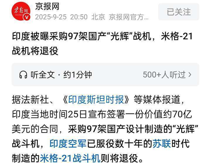 更为棘手的是,印度的年度国防预算不足200亿美元,而400亿美元的军购计划将极大压缩本土研发项目的资金,例如“光辉”MK-2和AMCA五代机的研发,将进入“依赖外购、国产滞后”的恶性循环。