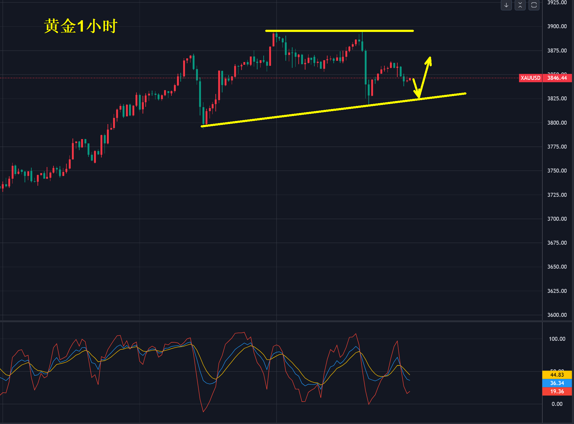 今天,我认为暂时在3875-3725美金区间内按震荡对待,在这个区间多空都没错,主要卡区间位置即可,一旦突破3865或3720美元就要考虑顺方向跟进。