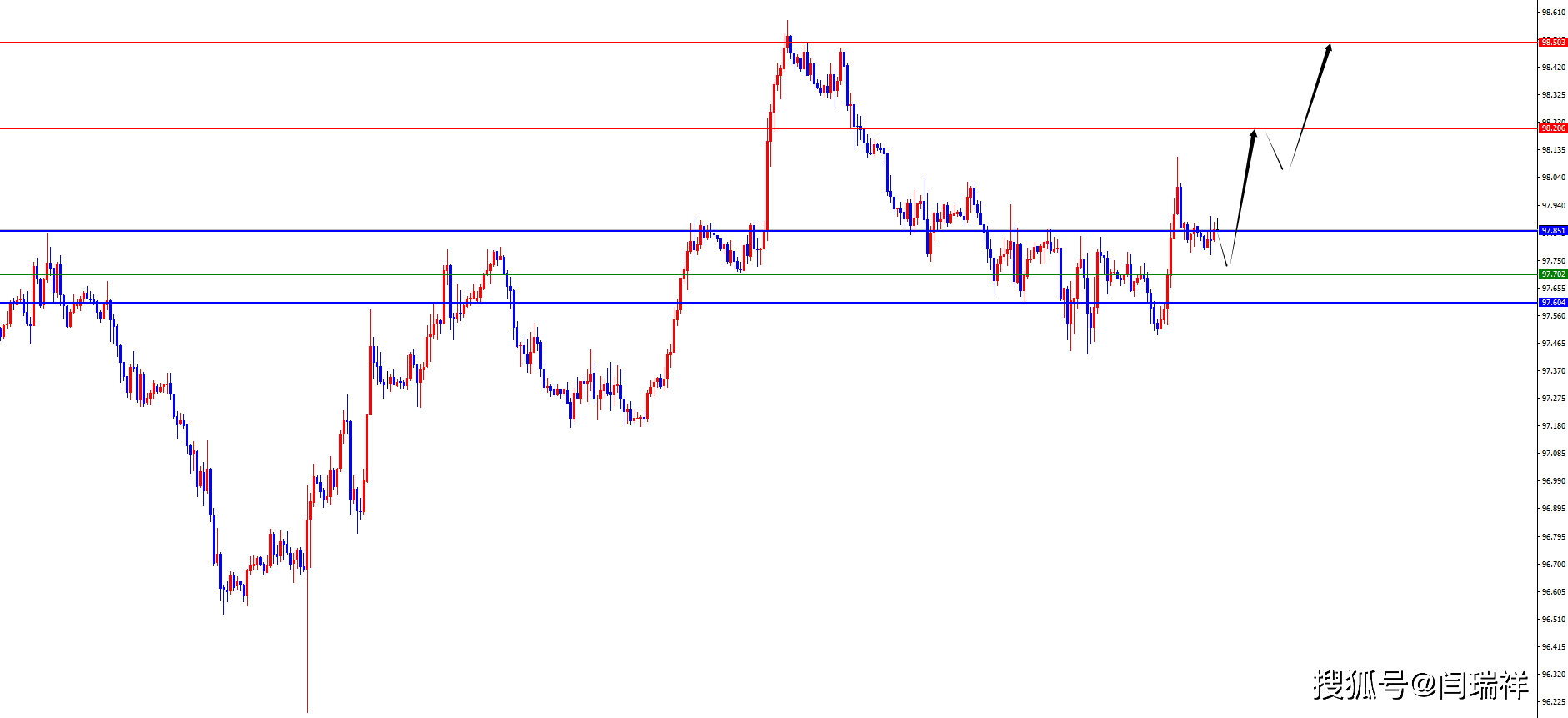 美指97.70-80区间多,防守5美金,目标98.20-98.50