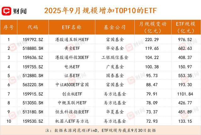 同花顺iFinD数据显示,富国基金旗下的港股通互联网ETF在9月规模增长超220亿元,达976.52亿元,相较年初的221.9亿元增幅超340%,以其当下的增长势头,有望成为首只规模破千亿元的非宽基指数产品。