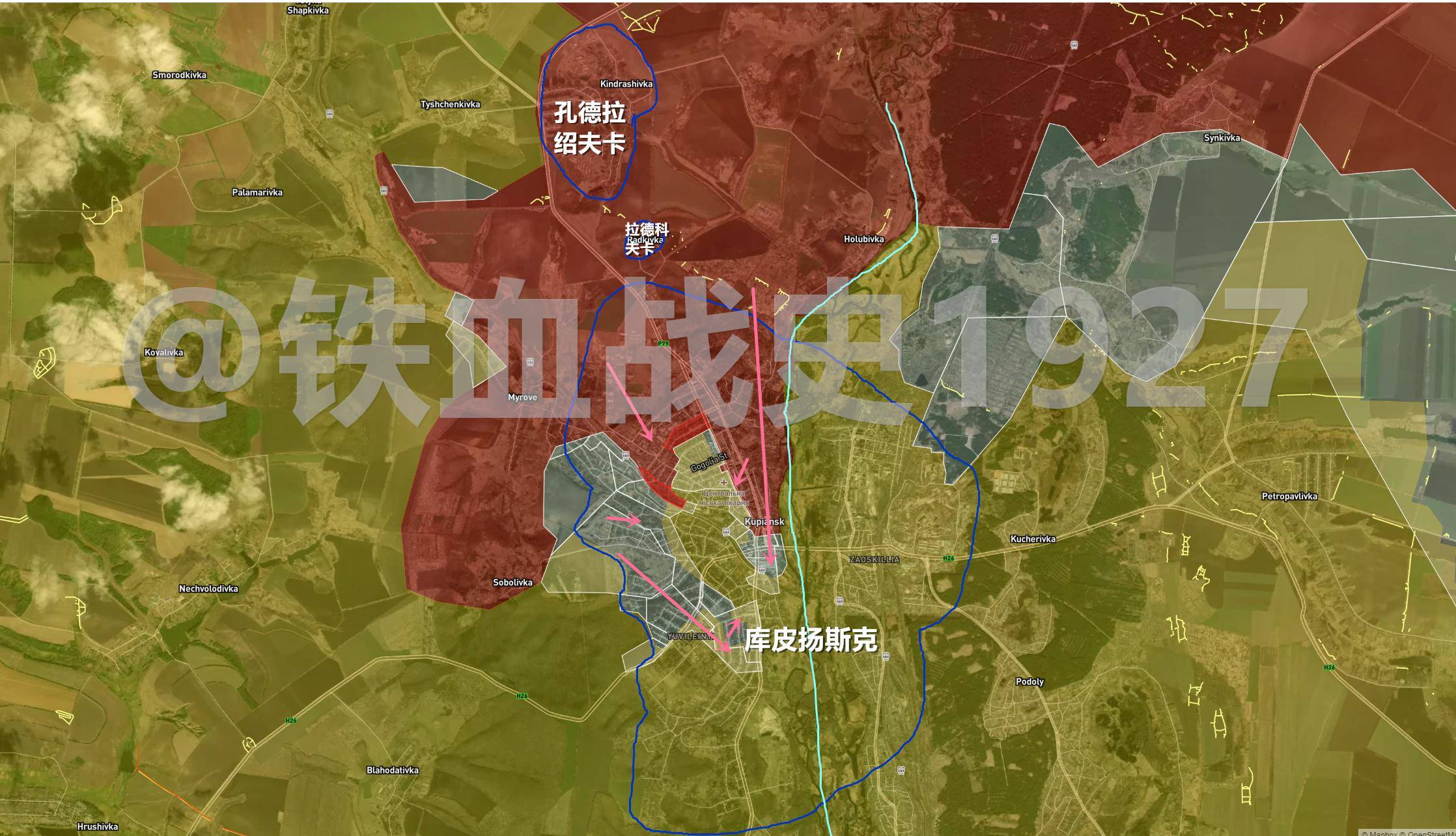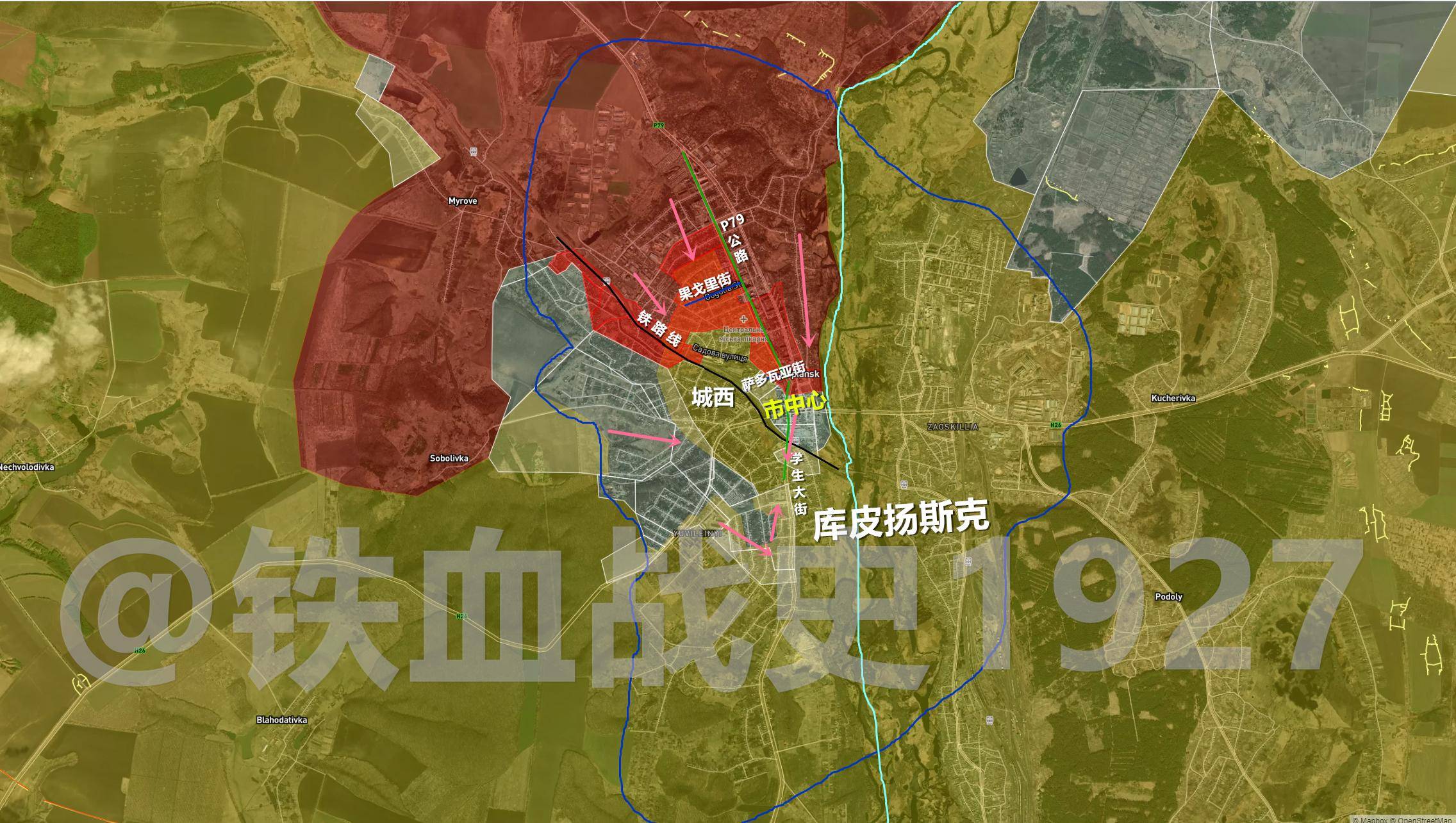 根据俄塔社的报道,俄军目前已控制了库皮扬斯克市约70%的区域。然而,这一数据被外界普遍认为有所夸大。根据乌克兰和俄罗斯观察员提供的数据,俄军目前主要稳固控制了市北部和西北部的一些区域,具体包括萨多瓦亚街以北、P79公路以东,以及果戈里街以北、铁路线以东的部分地区。其他区域虽然已被俄军攻入,但并未完全控制,且这些地区已对西北部的乌军形成了包围,乌军在这里面临断水、断电和断粮的困境。