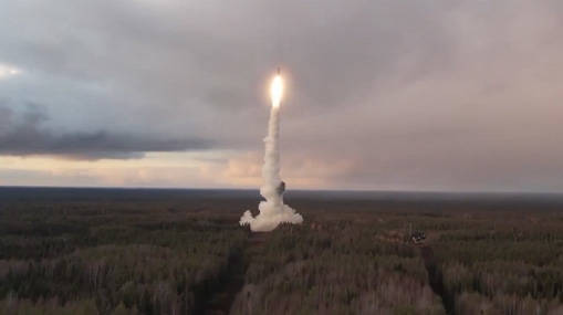 2024年10月29日,俄罗斯在战略核力量演习期间发射洲际弹道导弹。视频截图
