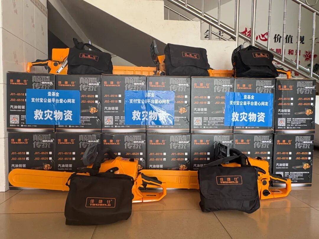 10月10日,由支付宝公益平台及爱心网友支持的油锯,发放至平果县果化镇受灾村。