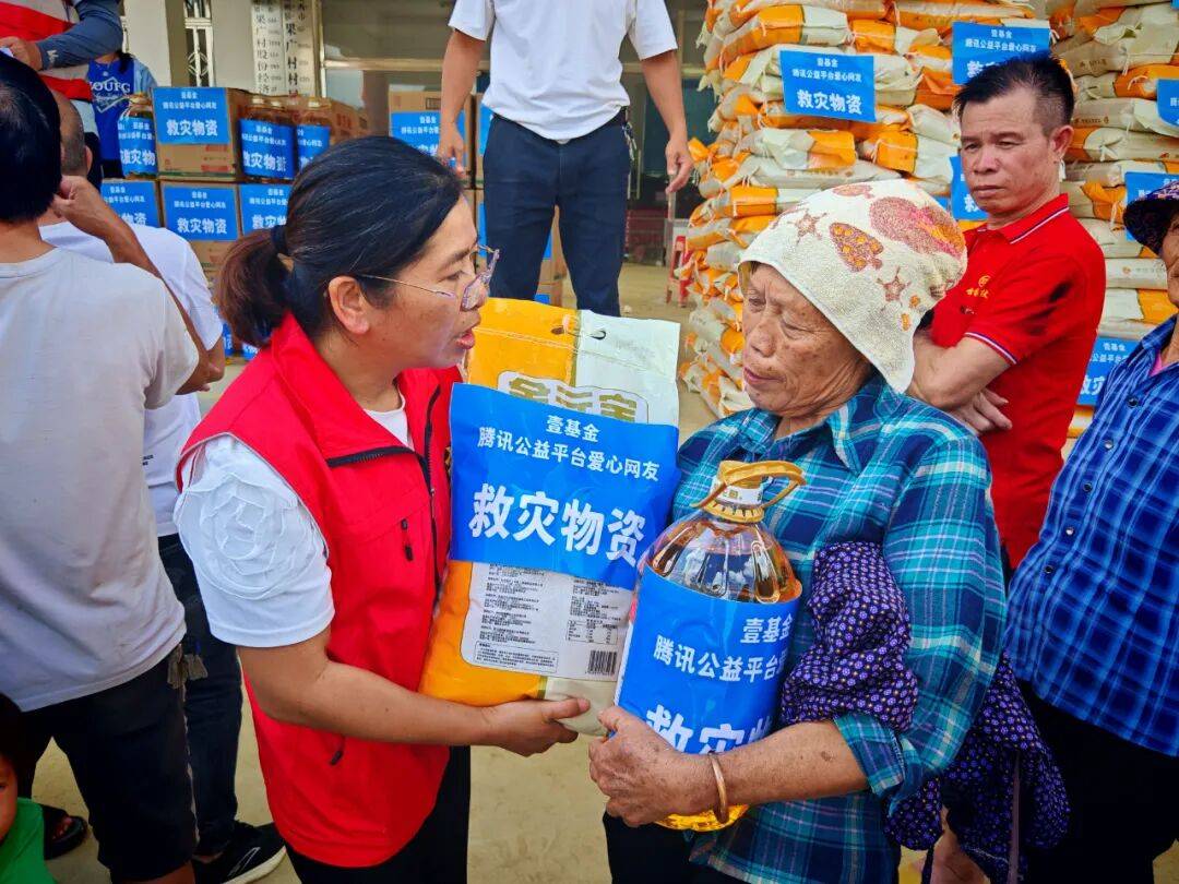 10月11日,由腾讯公益平台及爱心网友、哔哩哔哩公益平台及爱心用户支持的粮油包送达靖西市,并为当地的受灾老乡发放。
