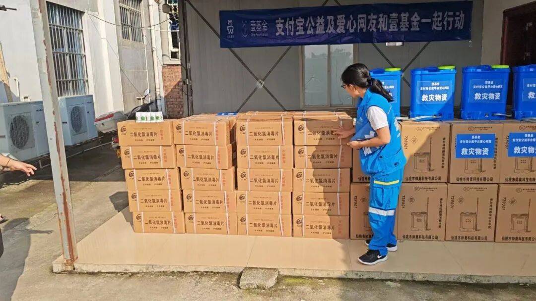 10月11日,由支付宝公益平台及爱心网友支持的消杀喷壶、含氯化泡腾片,送达右江区疾病预防控制中心,助力当地居民开展灾后环境消杀工作,恢复洁净安全的生活环境。