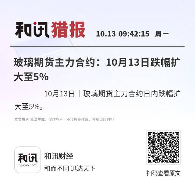 10月13日|玻璃期货主力合约日内跌幅扩大至5%。