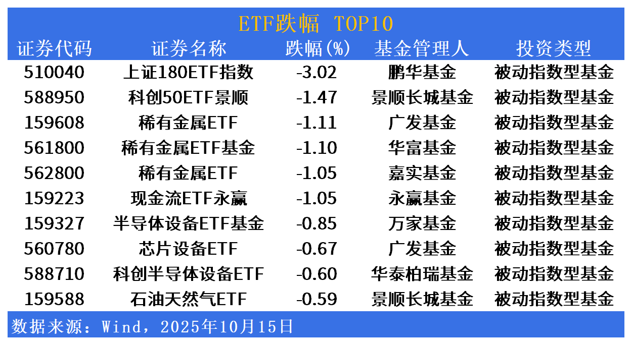 具体来看,中证A100指数ETF(561770)、汽车零部件ETF(562700)、线上消费ETF基金(159793)涨超4%;汽车零部件ETF(159565)、港股医疗ETF(159366)、电池50ETF(159796)、锂电池ETF(561160)、港股通医疗ETF(520510)、电池ETF嘉实(562880)、汽车零件ETF(159306)涨幅居前。