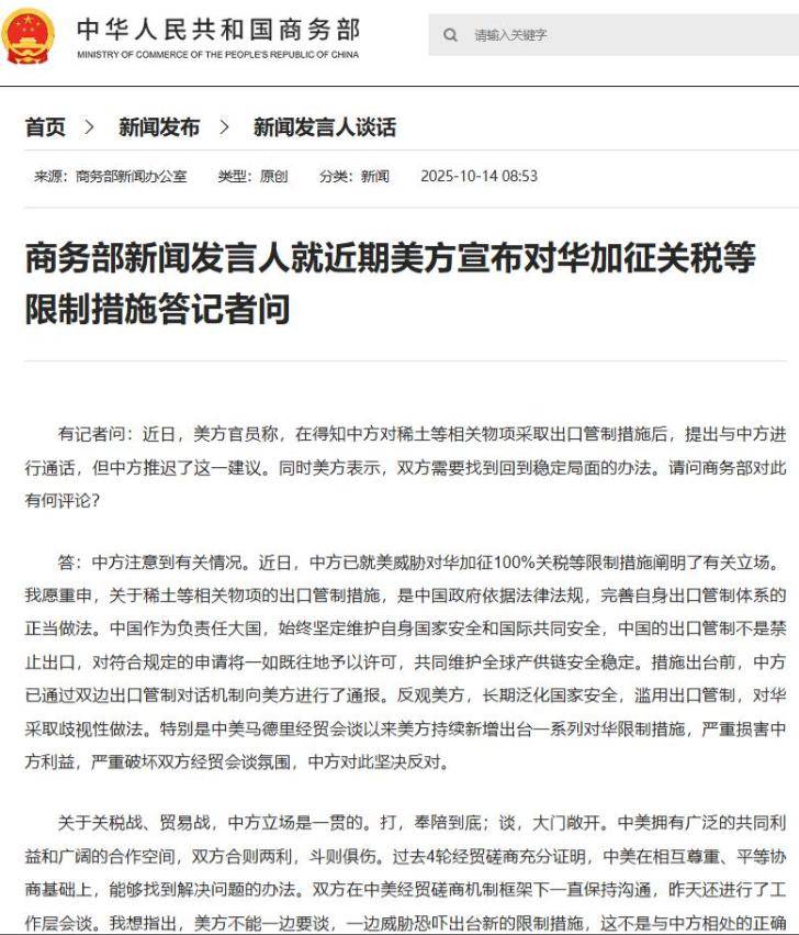 中美经贸较量多年,美方理应理解中方底线:中方不会轻易做出妥协,但一旦行动,几乎不会反悔。稀土管制、港务费等措施,都是为了维护国家安全与利益,绝不退让。此举也将选择权交给美国:继续施压,还是及时止损?