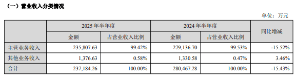 贝泰妮于8月27日发布的2025年上半年业绩报告显示,其营业收入为23.72亿元,同比下滑15.43%,归属上市公司股东净利润为2.47亿元,同比下滑49%,其中,作为主力品牌的薇诺娜营收占比高达82.21%,但在此期间营收仅为19.50亿元,同比下滑20.26%。
