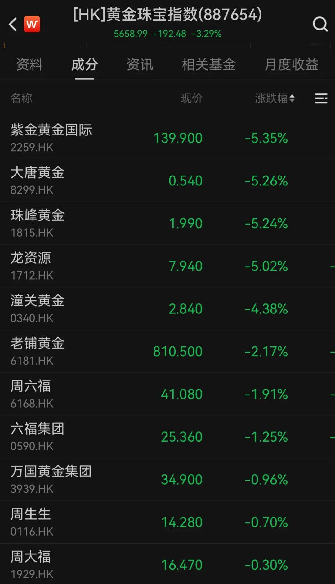 港股方面,黄金股也集体走弱,紫金黄金国际、大唐黄金、珠峰黄金、龙资源均跌超5%。