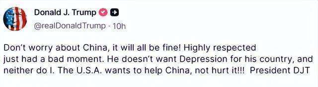 此外,特朗普提到自己与中方有“相同的看法”,这一表态引发了广泛猜测。他是想表达自己也不希望中国面临困难?还是他作为美国总统,认为应该更多地考虑到中国的利益?不管是哪种情况,特朗普的言辞都透露出一种“递台阶”的意图。紧接着,他进一步表示,美国的目标是“帮助”中国,这无疑在释放出信号:特朗普不希望中美关系继续恶化,更不想再打响新一轮的关税战。