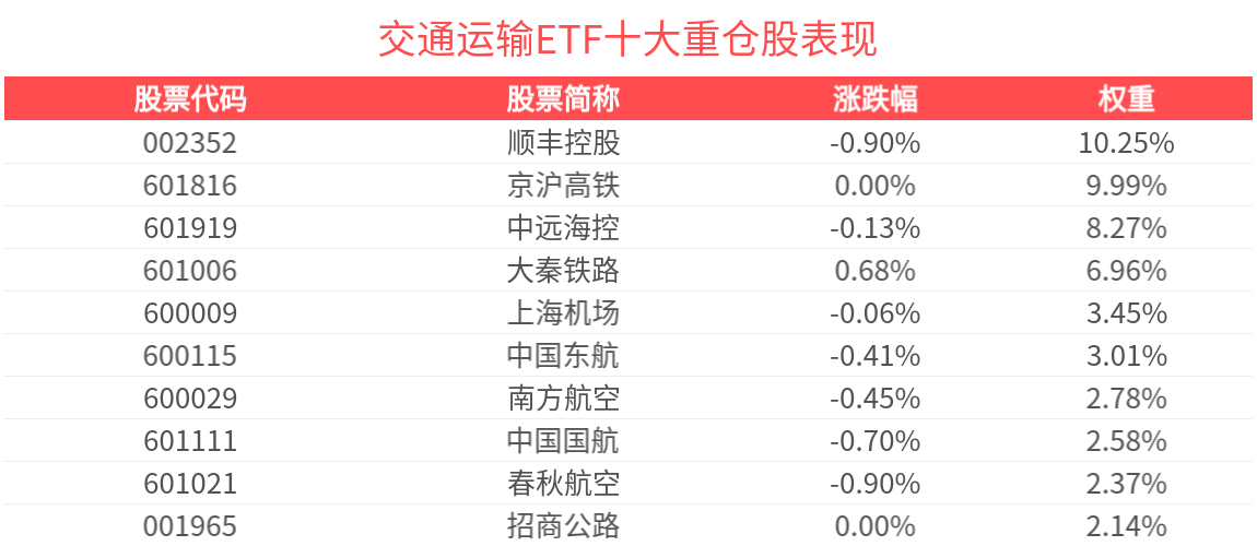 费率方面,交通运输ETF管理费率为0.50%,托管费率为0.10%。
