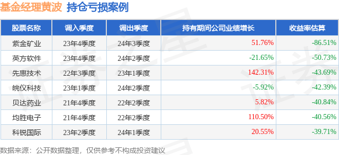 黄波管理的光大安瑞一年持有A基金在23年4季度买入紫金矿业,在持有3个季度后在24年3季度卖出。持有期间的估算收益率为-86.51%,持有期间紫金矿业在2023年到2024年的年报归属净利润增幅达51.76%。