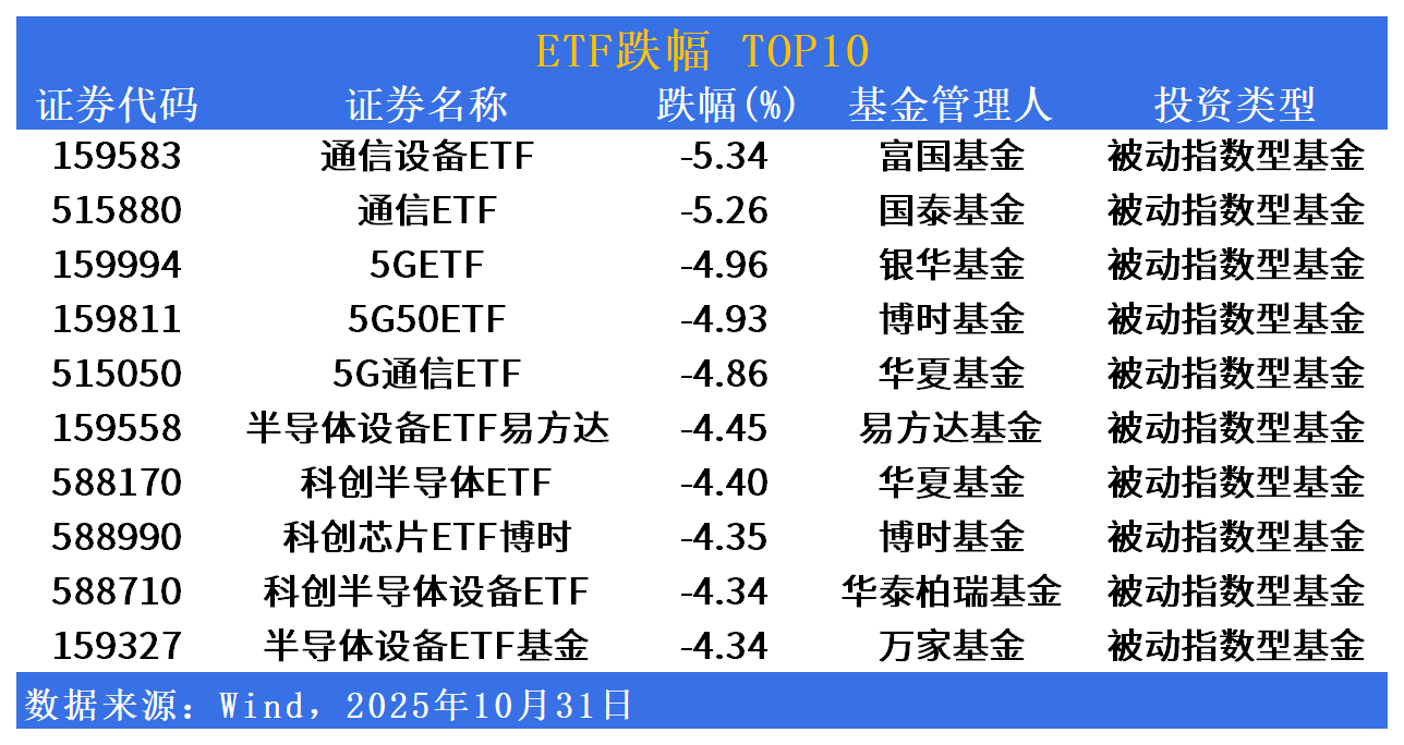跌幅方面,通信、芯片回调