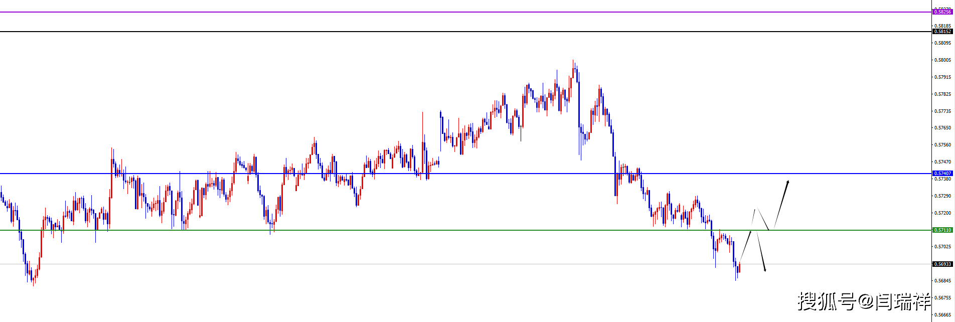关键分水岭0.5710位置,价格上破之前维持空对待