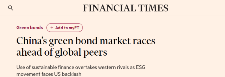 英国《金融时报》网站5日发表题为《中国绿色债券市场规模超过全球同行》的文章。