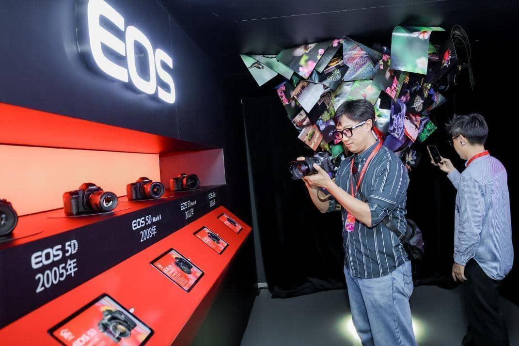 佳能EOS5系数码相机齐聚现场,现场观众仿佛穿梭于影像技术的时光隧道