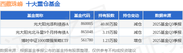 重仓西藏珠峰的公募基金请见下表:
