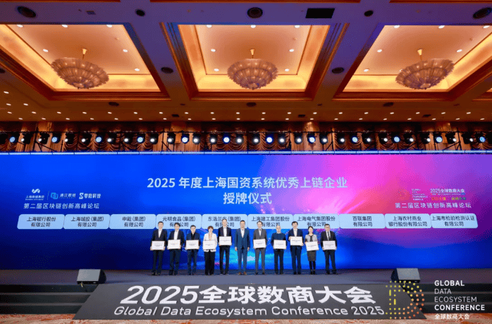 上海市国资委副主任陈东为东浩兰生集团、上海建工集团、光明食品集团、上海电气集团、申能集团、百联集团、上海城投集团、上海农商银行、上海银行、上海市检验检测认证有限公司10家企业授牌。这些企业在区块链应用落地中发挥了标杆作用,为国企数字化转型提供了可复制的实践经验。