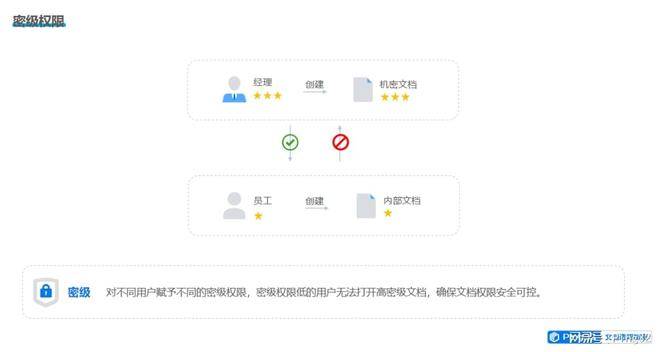 可根据部门、岗位、角色或项目设定不同访问和操作权限,包括查看、编辑、复制、打印等,实现精细化管理,让文件在内部安全流转,降低泄密风险。