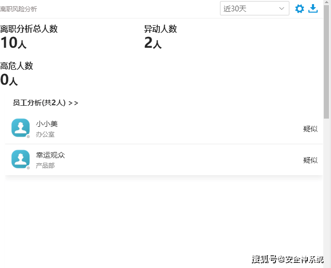 这些数据还会被AI模型分析,生成“离职风险指数”:如果某员工近期工作效率骤降、终端使用率异常、大量导出敏感文件,系统会提前预警,让HR或IT有时间介入沟通或加强管控。