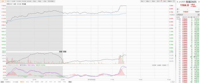 1月7日,截至中午收盘,焦煤期货主力合约焦煤2605上涨7.98%,触及涨停,报收1164元/吨。此外,沪镍2602涨超7%,焦炭2605涨超6%,沪锡2602、玻璃605、纯碱605涨超5%。