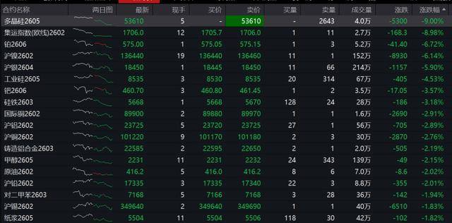 截至1月8日白天收盘,沪镍2602合约收跌6.14%,前一交易日该合约曾触及涨停板;同样在前一天收涨,沪银期货也收跌近6%;国际铜、沪铝、沪铜、铸造铝合金、沪铅等期货主力合约均跌超2%;沪锡、氧化铝、沪锌、沪金等同样收跌。