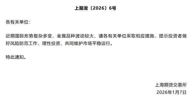 上期所昨日夜间发布关于做好市场风险控制工作的通知,提到近期国际形势复杂多变,金属品种波动较大,请各有关单位采取相应措施,提示投资者做好风险防范工作,理性投资,共同维护市场平稳运行。 在此之前,上期所也曾不到2周前发布类似同时,彼时提示有色金属和贵金属品种波动较大。
