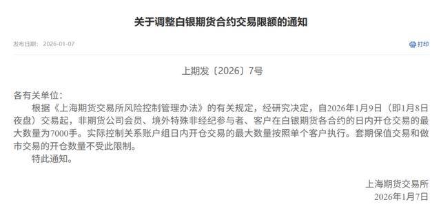 比调板来得更快的是交易限额调整,上期所宣布,从1月9日(即今日夜盘)交易起,非期货公司会员、境外特殊非经纪参与者、客户在白银期货各合约的日内开仓交易的最大数量为7000手。实际控制关系账户组日内开仓交易的最大数量按照单个客户执行。套期保值交易和做市交易的开仓数量不受此限制。