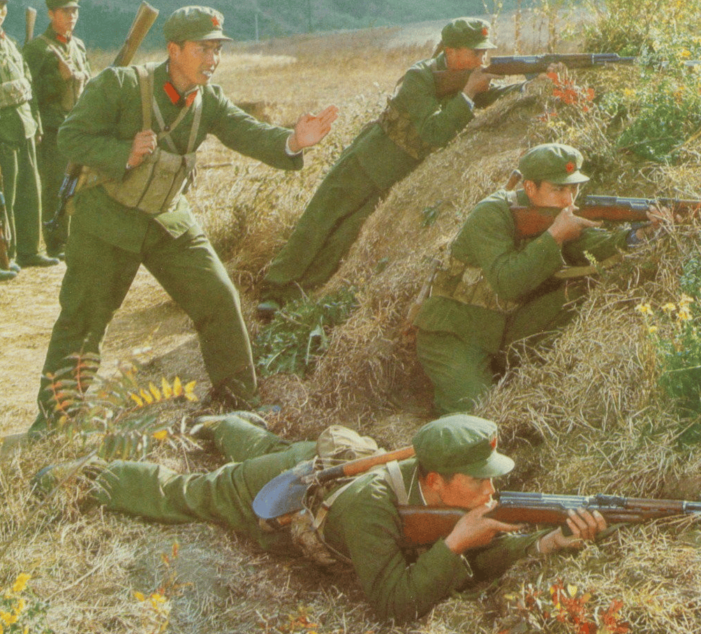 老照片:使用56式半自动步枪进行训练的解放军战士