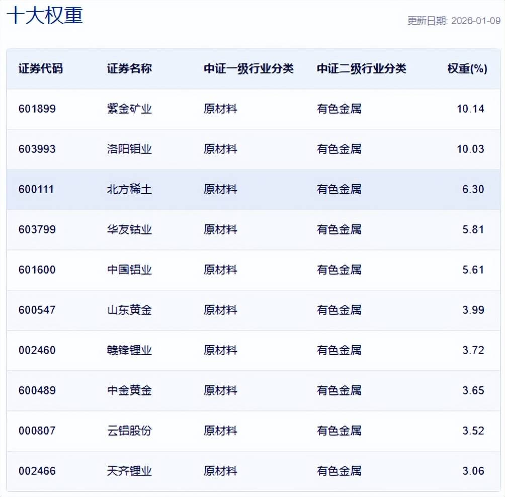 中证有色金属矿业主题指数中【黄金+铜+稀土】占比更高,为55.8%,而中证有色指数【黄金+铜+稀土】占比为50.9%,中证有色金属矿业指数受黄金、铜、稀土等热门板块等利好催化更明显。
