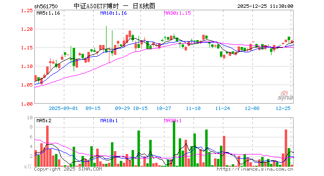 12月25日,截止午间收盘,中证A50ETF博时(561750)跌0.09%,报1.167元,成交额33.78万元。中证A50ETF博时(561750)重仓股方面,宁德时代截止午盘跌1.36%,贵州茅台涨0.53%,中国平安涨2.55%,招商银行涨0.05%,紫金矿业跌1.02%,美的集团跌0.32%,长江电力跌0.04%,立讯精密跌0.22%,恒瑞医药跌0.16%,比亚迪涨0.29%。