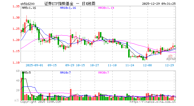 12月29日,证券ETF指数基金(516200)开盘跌0.09%,报1.173元。证券ETF指数基金(516200)重仓股方面,东方财富开盘跌0.13%,中信证券跌0.24%,国泰海通跌0.14%,华泰证券跌0.17%,广发证券跌0.23%,招商证券跌0.06%,东方证券涨0.27%,申万宏源涨0.19%,兴业证券跌0.65%,中金公司涨0.14%。