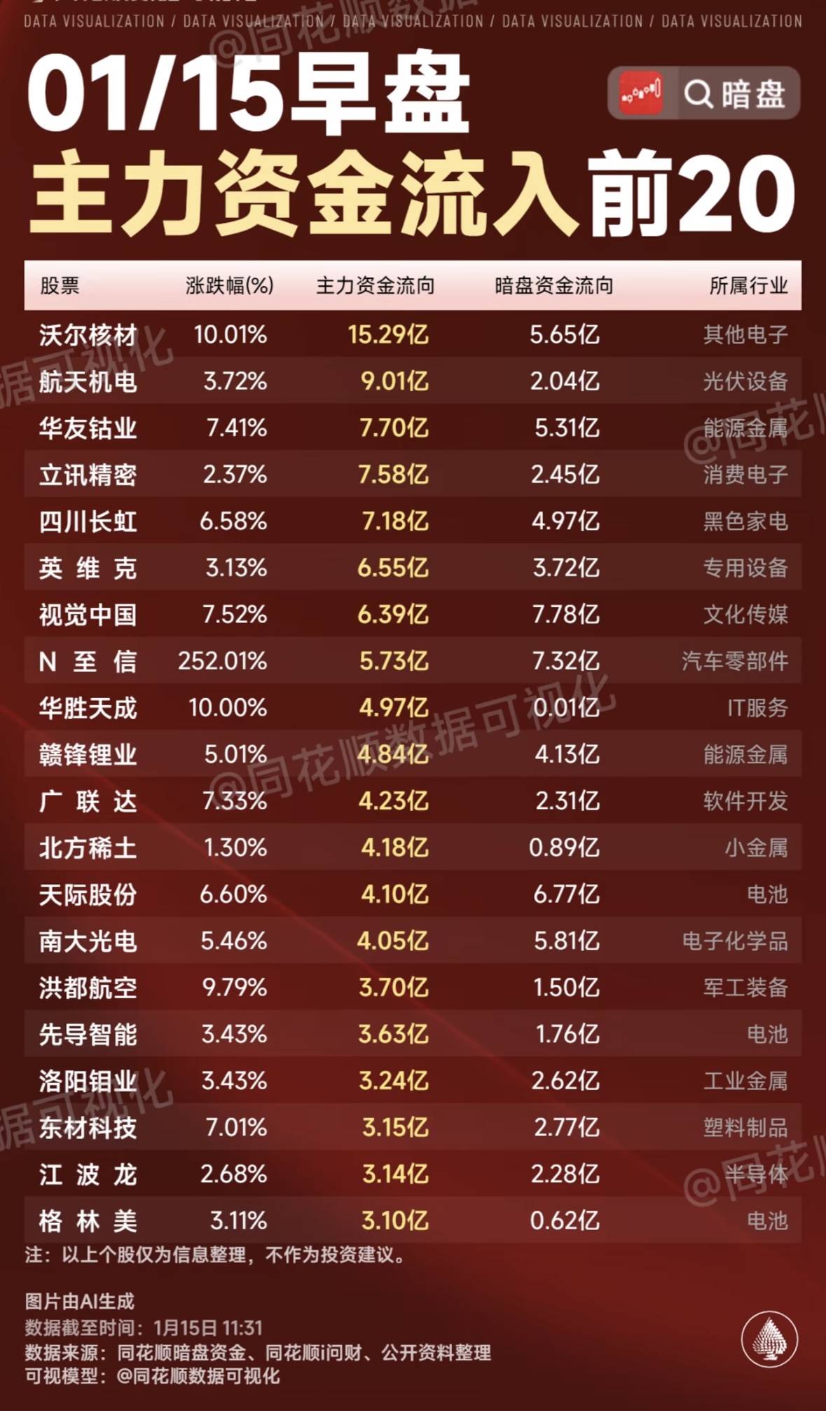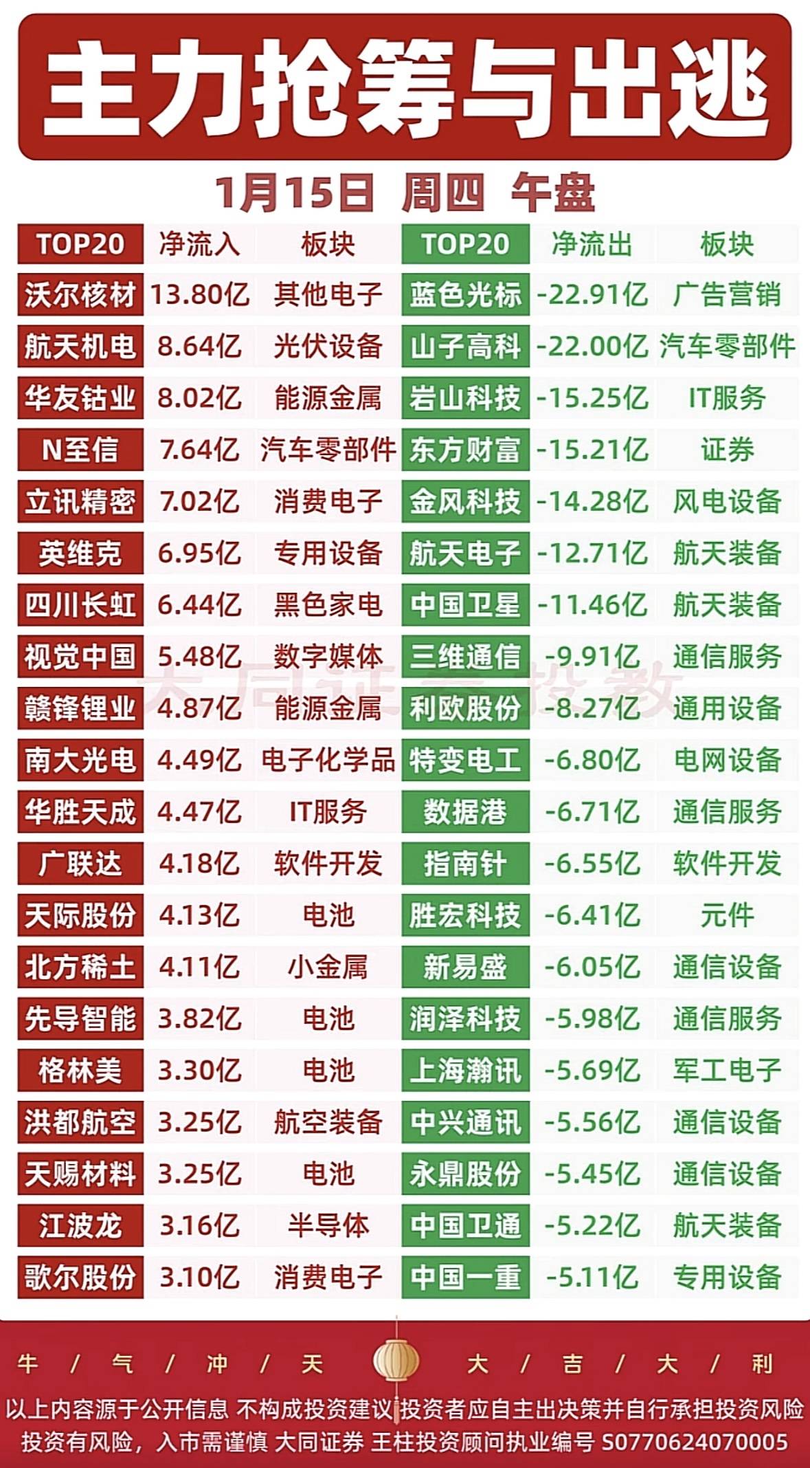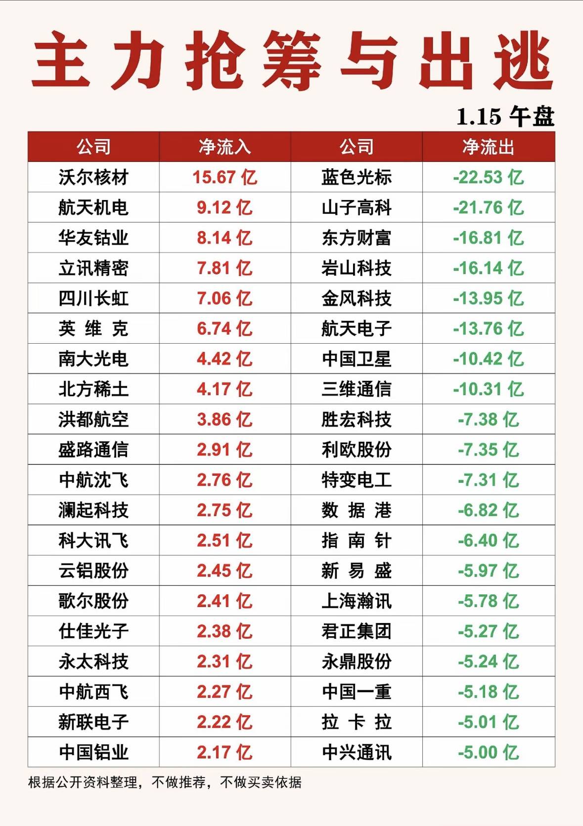 午盘资金流向分化,多股呈现净流入与净流出态势,市场资金博弈明显,需谨慎参考。