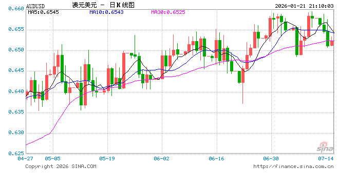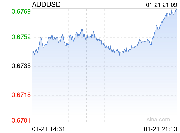 新浪外汇消息2026年01月21日,截至21时09分,外汇市场上澳元兑美元汇率突破1澳元兑换0.6769美元。涨幅为0.5048%