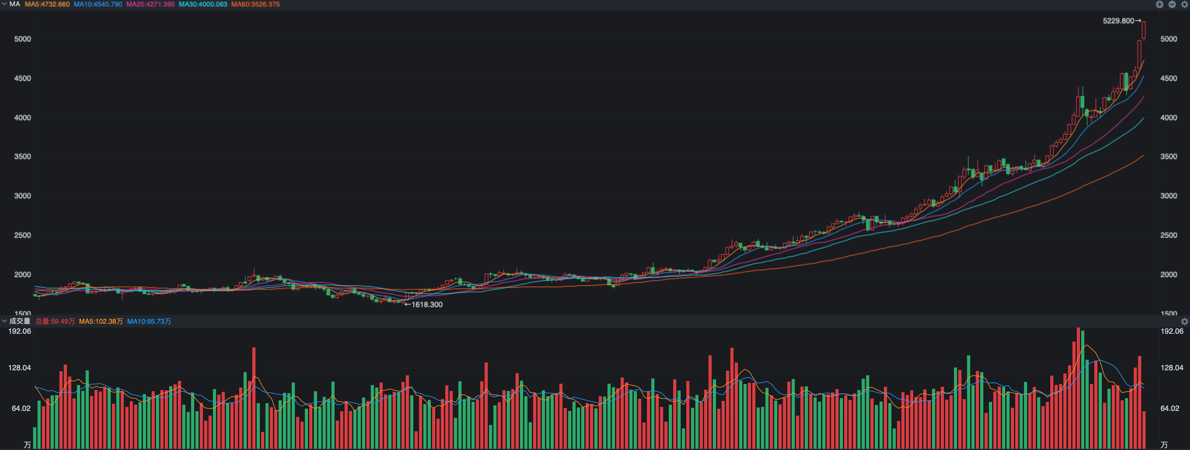之后就是大家熟悉的纽约黄金期货价格了,最新收盘在5218美元,涨幅也达到了1.88%;