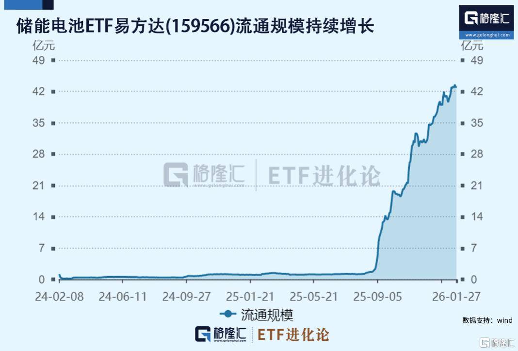 入选格隆汇“全球视野,下注中国”十大核心ETF储能电池ETF易方达(159566)开年以来涨幅平稳,今日小幅下跌0.2%,盘中获资金逆势净申购5200万份,截至1月28日,累计上涨4%,年内合计净流入2.42亿元,居同标的第一。