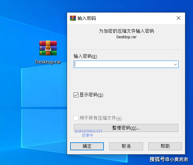 4、完成后,双击该压缩包,就会弹出窗口提示输入密码,看不到压缩包里的文件名、文件数量等任何结构内容。