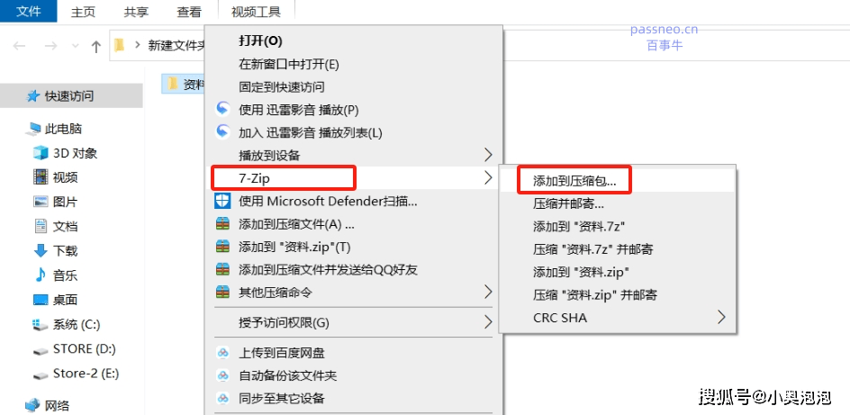 1、选中需要加密的文件或文件夹,点击右键,选择7-Zip列表中的【添加到压缩包...】。