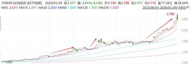 这也使得有色矿业ETF招商(159690)成为这波有色行情中的β尖子生,净值涨幅一路升高。最关键的是,指数布局起来要比个股的波动小很多,在黄金、白银、铜业表现分化的时候能分散风险,抓住不同金属的上涨机会。