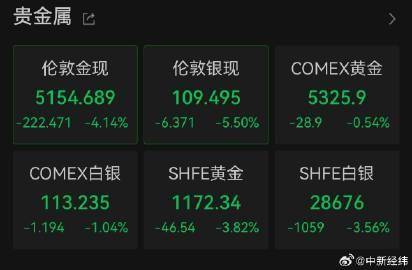 30日,现货黄金早盘拉升后,快速跳水,现已跌破5200美元,日内跌超4%。现货白银跌破110美元,日内跌超5%。