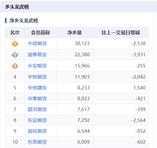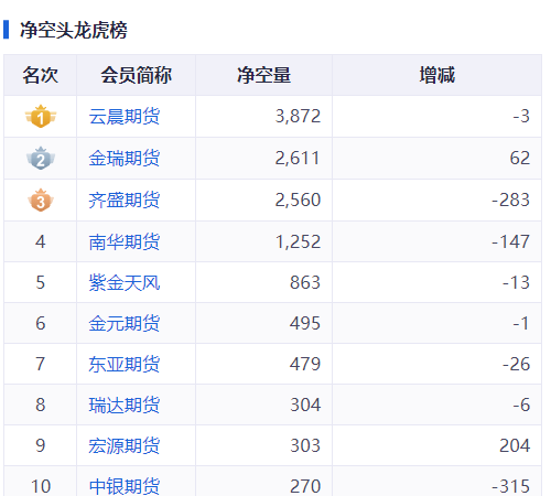 不过,沪金期货主要净空头席位并未有明显加仓空单。
