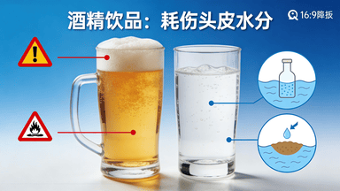 白酒、啤酒、红酒、果酒等含酒精的饮品,对头皮的伤害主要体现在两个方面:一是酒精具有脱水作用,长期大量饮用会导致体内水分流失,不仅会让皮肤干燥,还会让头皮处于缺水状态,出现头皮干燥、瘙痒、发丝干枯分叉等问题;二是酒精会影响肝脏代谢和内分泌平衡,导致激素水平紊乱,而激素失衡正是诱发脱发(如雄激素性脱发)的重要原因之一。