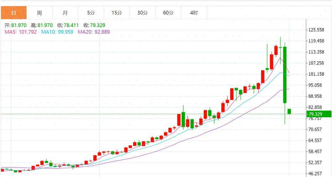 现货白银周一盘初跌幅扩大至5%,报79.4美元/盎司。
