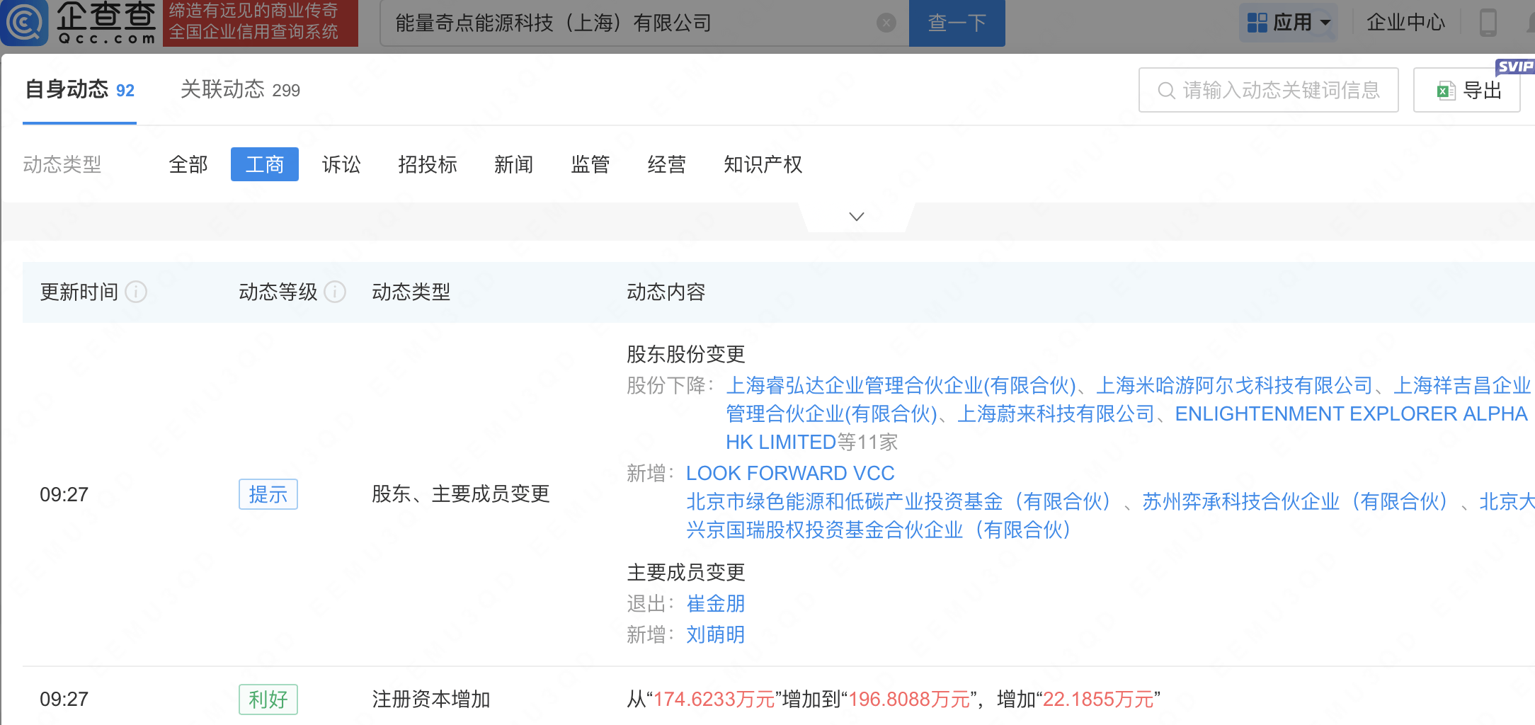 企查查APP显示,近日,能量奇点能源科技(上海)有限公司发生工商变更,新增北京市政府投资引导基金(有限合伙)旗下北京市绿色能源和低碳产业投资基金(有限合伙)等为股东,同时注册资本增至196.81万元。企查查信息显示,该公司成立于2021年,经营范围包含:电力行业高效节能技术研发;余热发电关键技术研发;能量回收系统研发等。据其官网,能量奇点致力于推动聚变能源商业化发展,加速实现能源自由。
