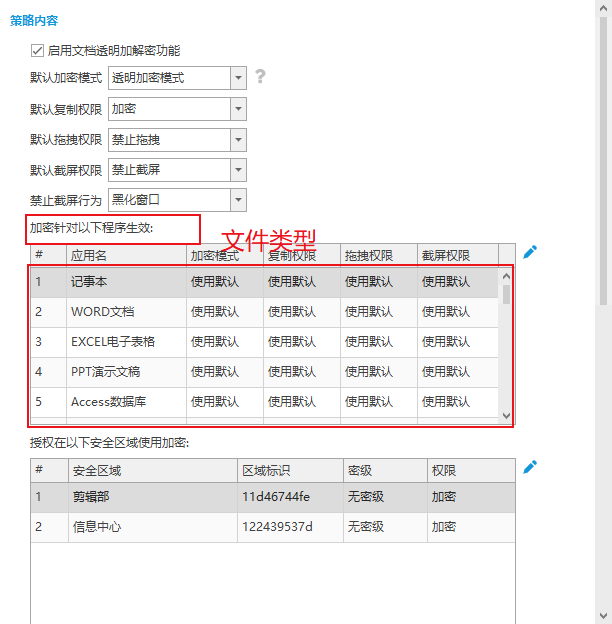 透明加密:软件针对应用及应用产生的后缀加密。
