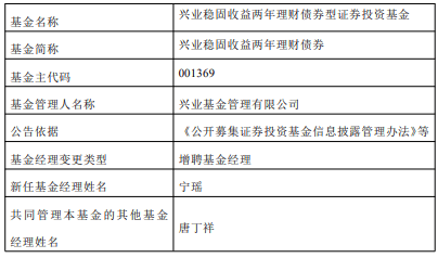 中国经济网北京2月5日讯 今日,兴业基金公告,兴业稳固收益两年理财债券增聘宁瑶。