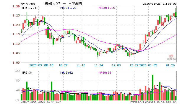 1月26日,截止午间收盘,机器人ETF南方(159258)跌1.51%,报1.241元,成交额2215.57万元。机器人ETF南方(159258)重仓股方面,科大讯飞截止午盘跌0.97%,汇川技术跌2.02%,拓普集团跌6.11%,大华股份跌3.34%,大族激光跌0.04%,双环传动跌4.32%,石头科技跌1.17%,中控技术涨14.16%,绿的谐波跌3.85%,机器人涨2.90%。