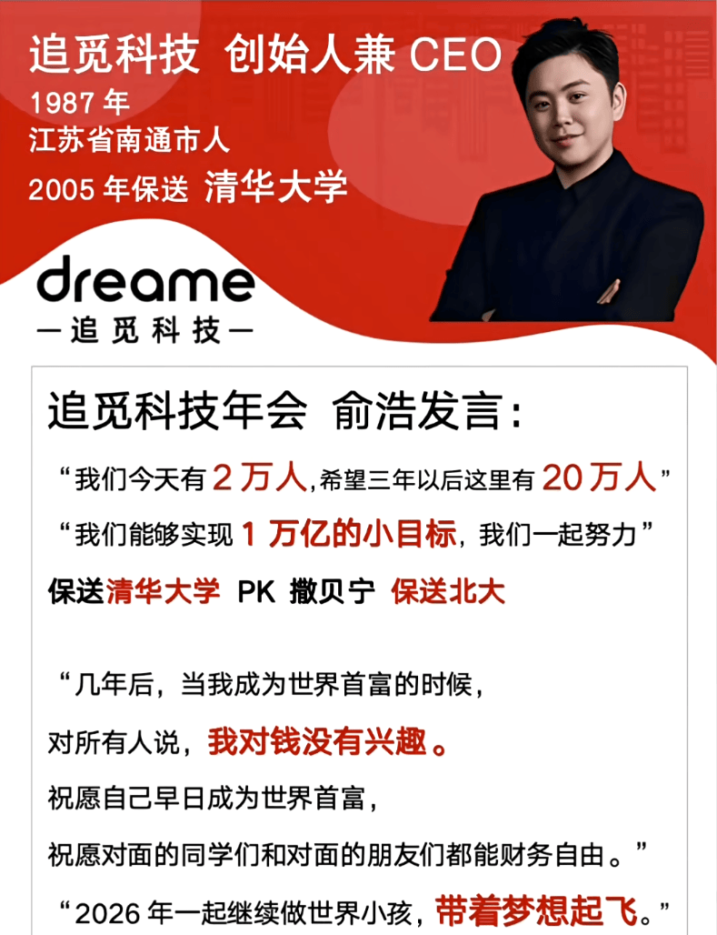 值得一提的是,俞浩,1987年出生于江苏南通,追觅科技创始人兼CEO。