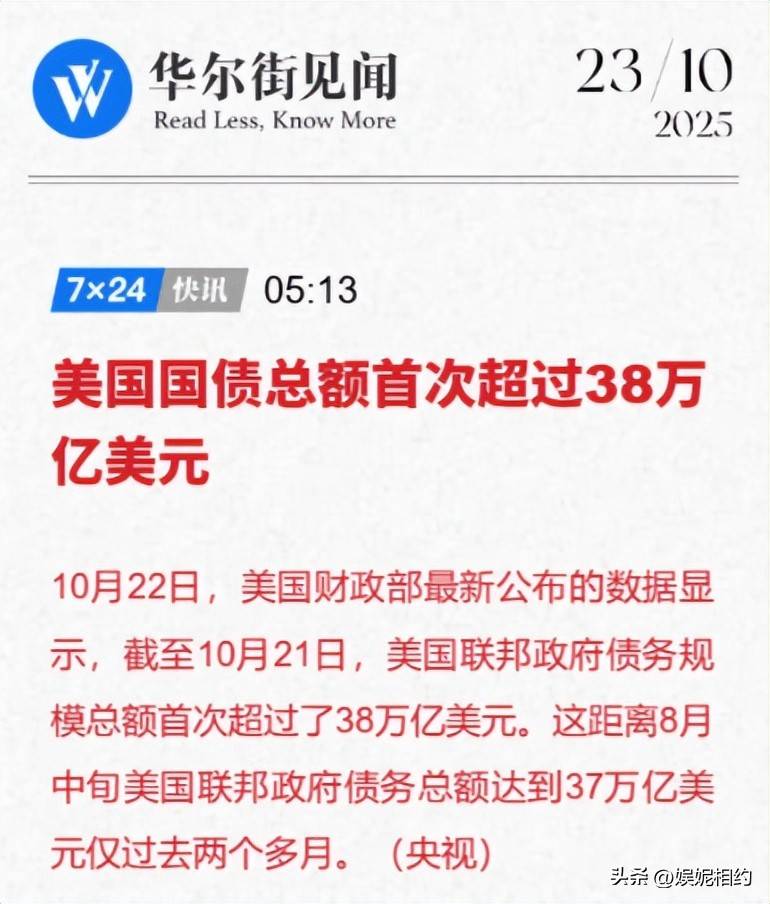 这不是预言,是正在倒数的结局,2025 年 12 月 5 日美国联邦债务正式突破 38.4 万亿美元。